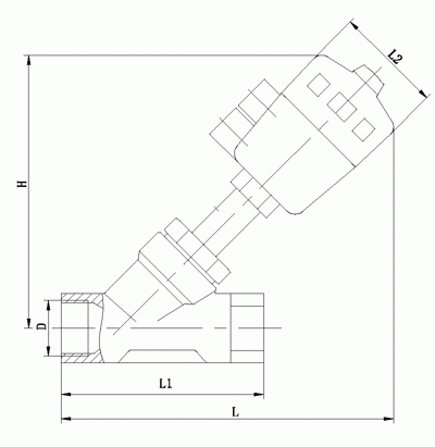 絲口氣動角座閥外形結(jié)構(gòu)圖: