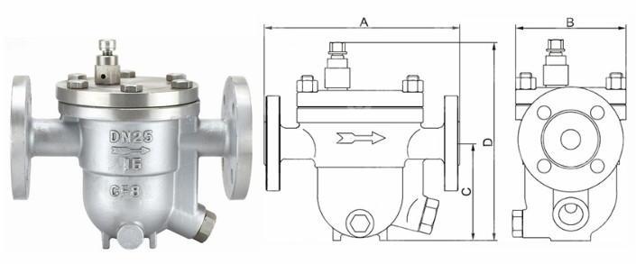不銹鋼自由浮球式疏水閥外形結(jié)構(gòu)圖: