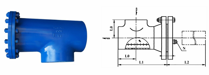 三通反折流T型過(guò)濾器接口端連接方式可采用法蘭、對(duì)焊、承插焊和內(nèi)螺紋等,其主要用于化工、石油化工、輕工等生產(chǎn)中的液體及氣體物料,用以過(guò)濾其固體雜質(zhì),其通常裝設(shè)在泵、閥門(mén)、壓縮機(jī)的入口或流量?jī)x表前的管道上,以保護(hù)此類(lèi)設(shè)備或儀表。本產(chǎn)品宜安裝在有90°流向變化處,以節(jié)省彎頭。