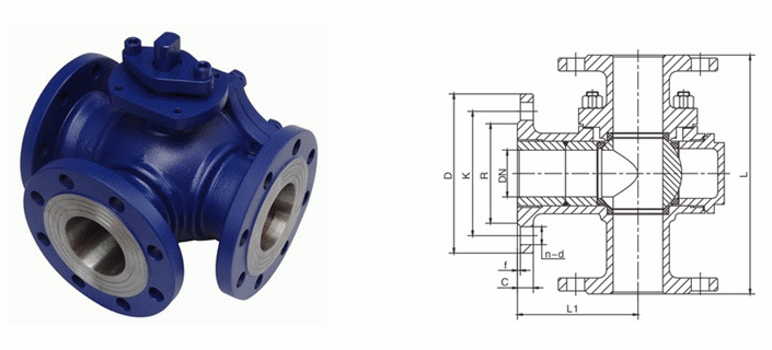 T型三通球閥外形結(jié)構(gòu)圖: