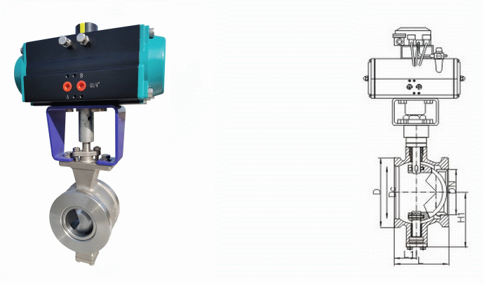 不銹鋼氣動V型對夾球閥 |