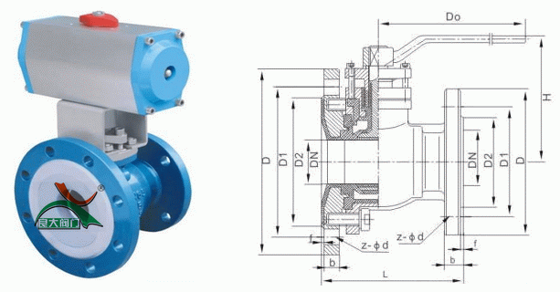 氣動襯氟放料球閥外形結(jié)構(gòu)圖: