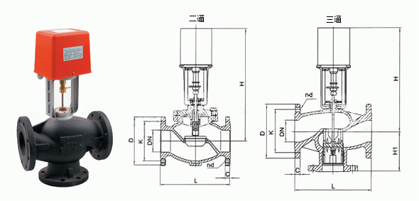 電動三通閥配以電子驅(qū)動控制裝置后,能調(diào)節(jié)蒸汽或冷、熱水的流量,廣泛應(yīng)用于中央空調(diào)、采暖、水處理、工業(yè)的流體控制。驅(qū)動器是由可逆同步馬達(dá)驅(qū)動,并帶磁性離合器。馬達(dá)通過馬達(dá)轉(zhuǎn)子與離合器所產(chǎn)生的磁性作用,能在停頓的情況下產(chǎn)生穩(wěn)定的扭矩。故此當(dāng)馬達(dá)沒有電流通過時能穩(wěn)定地停頓在任何一點(diǎn),當(dāng)閥門全開或全關(guān)時磁離合器分離,停止調(diào)節(jié)。驅(qū)動器的遞增式或比例式控制器所發(fā)訊號能使馬達(dá)順時轉(zhuǎn)動或逆時轉(zhuǎn)動。電動三通閥產(chǎn)品實物圖: