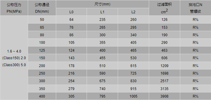 不銹鋼三通T型過濾器外形尺寸表:
