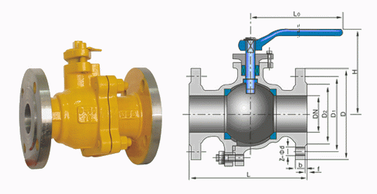 液化氣球閥連接尺寸:DN200以下手柄傳動