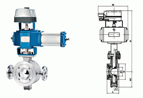 保溫氣動(dòng)V型球閥外形結(jié)構(gòu)圖: