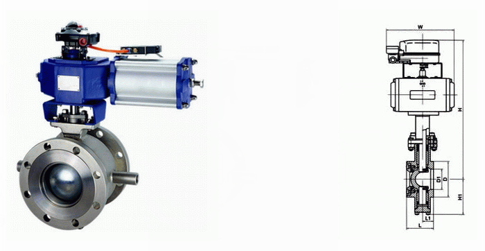 氣動(dòng)保溫V型球閥外形結(jié)構(gòu)圖: