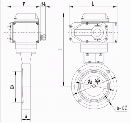 GID型電動(dòng)高真空蝶閥外形結(jié)構(gòu)圖: