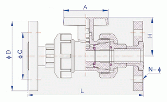 Q41F-16S法蘭式塑料球閥外形結(jié)構(gòu)與連接尺寸: