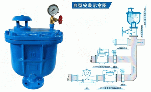 復(fù)合式排氣閥用于管路上的最高點(diǎn)有閉氣的地方,排除管內(nèi)的氣體來(lái)疏通管道,達(dá)到正常工作,如不裝排氣閥,管內(nèi)流動(dòng)的液體會(huì)產(chǎn)生動(dòng)熱引起氣體形成短路,使管道出水容量達(dá)不到設(shè)計(jì)要求,其次,管道在運(yùn)轉(zhuǎn)時(shí)出現(xiàn)停電、停泵管道會(huì)出現(xiàn)負(fù)壓力會(huì)引起管道振動(dòng)或破裂,排(吸)氣閥就迅速反空氣吸入客內(nèi),防止管道振動(dòng)或破裂。復(fù)合式排氣閥結(jié)構(gòu)及用途: