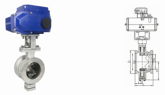 對夾式電動V型切斷閥外形結(jié)構(gòu)圖: