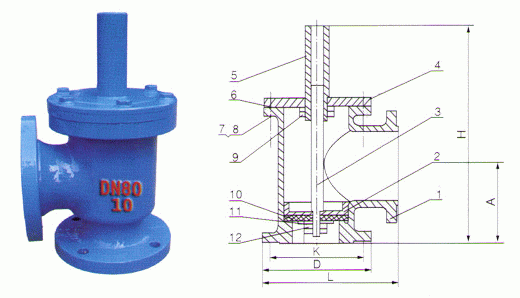 碳鋼水上式底閥外形結(jié)構(gòu)圖: