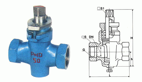 二通內(nèi)螺紋不銹鋼旋塞閥外形結(jié)構(gòu)圖: