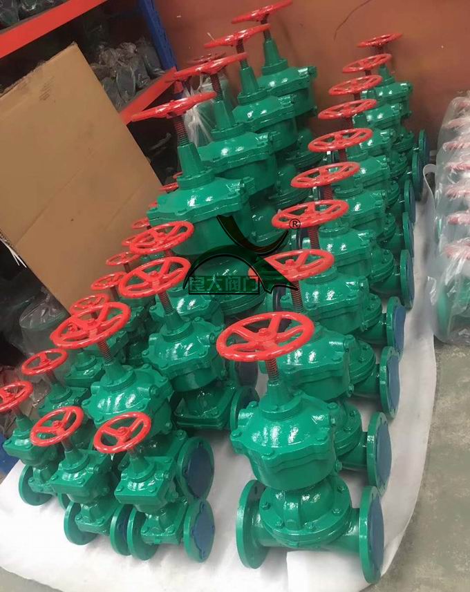 氣動襯氟隔膜閥用于控制非腐蝕性或一般腐蝕性以及強腐蝕性介質(zhì),閥體內(nèi)腔表面無襯里或覆有可選擇的各種氟塑料和各種橡膠,適用于各種不同工作溫度和流體管路。是由氣缸和隔膜閥組成,用氣動執(zhí)行器來帶動隔膜閥的開關(guān),從而達(dá)到管道中的介質(zhì)截斷功能和接通。閥內(nèi)部襯不同的塑料,可抗不同程度的腐蝕介質(zhì)。閥體采用鑄鐵、鑄鋼或不銹鋼材質(zhì),采用四氟或其他橡膠為膜片,閥體和膜片的緊密配合提供閥體密封和閥座密封,確保了管道內(nèi)部和外部環(huán)境完全隔絕。
