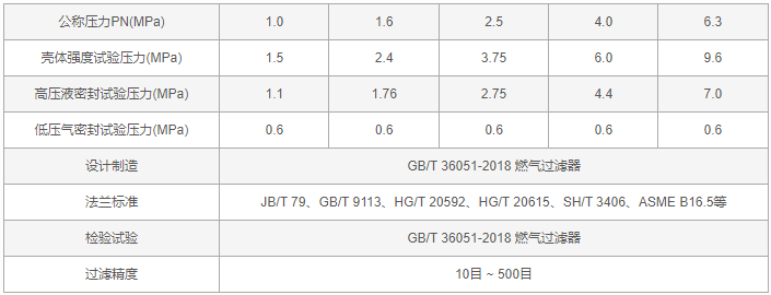 天然氣Y型過濾器技術(shù)規(guī)范表:
