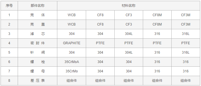 天然氣Y型過濾器零件材料表: