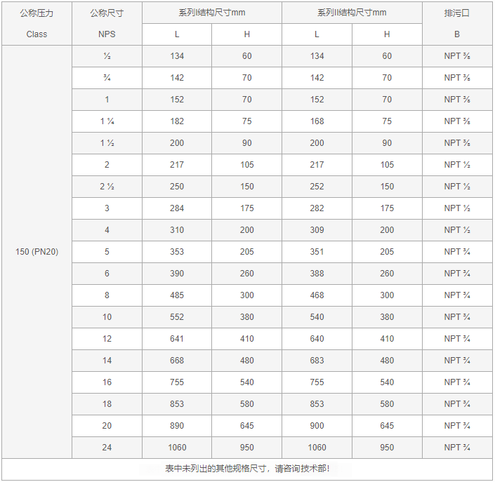 雙相鋼Y型過濾器外形尺寸表: