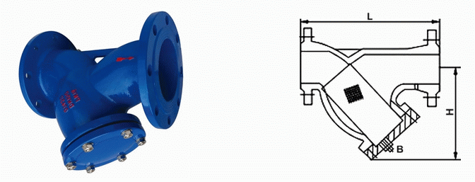 鑄鐵Y型過濾器外形結(jié)構(gòu)圖: