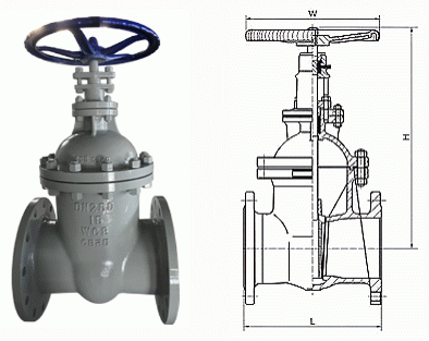 德標(biāo)暗桿閘閥外形結(jié)構(gòu)圖: