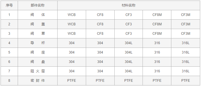油罐雙向阻火呼吸閥零件材料: