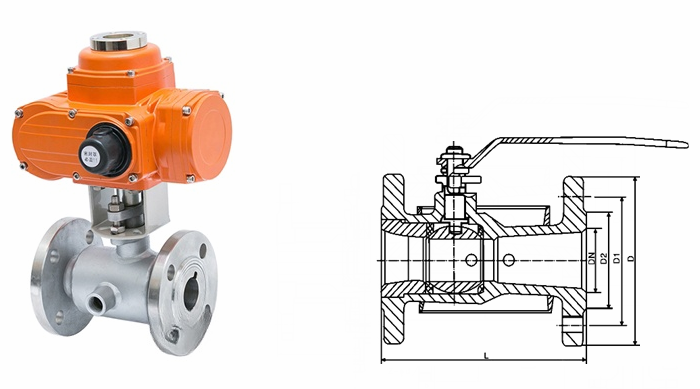 電動保溫法蘭球閥外形結(jié)構(gòu)圖: