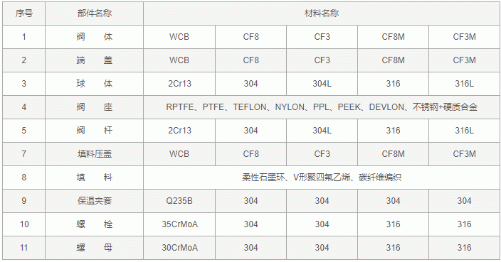法蘭保溫球閥零件材料: