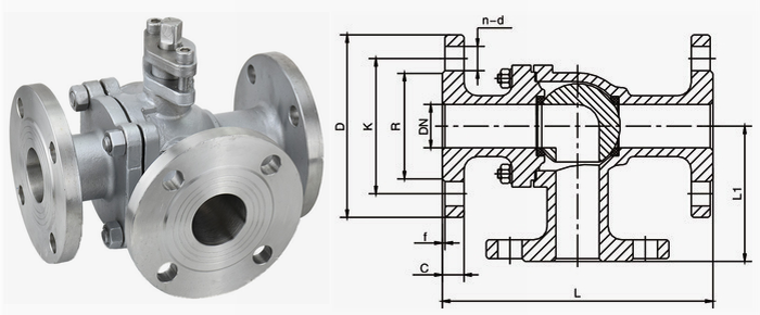 L型三通法蘭球閥外形結(jié)構(gòu)圖: