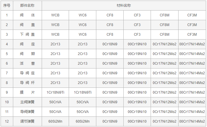 活塞式蒸汽減壓閥零件材料: