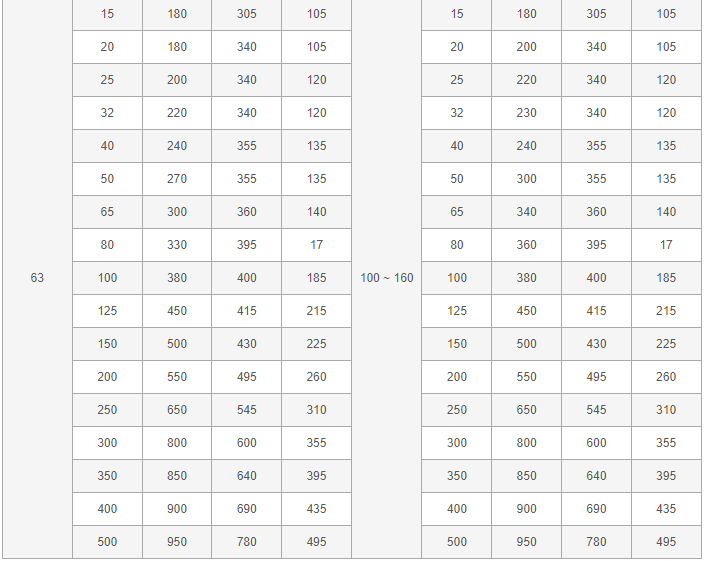 活塞式蒸汽減壓閥外形尺寸表: