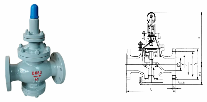 活塞式蒸汽減壓閥外形結(jié)構(gòu)圖: