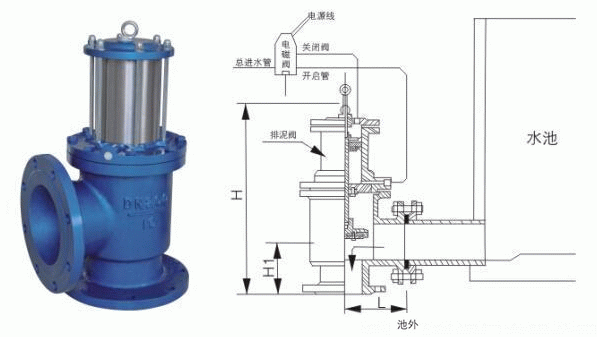 氣動、液動角式排泥閥主要用于自來水公司或污水廠的各類水池,安裝在池外排除池內(nèi)泥沙。