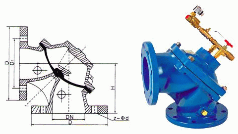 角式隔膜排泥閥外形結(jié)構(gòu)圖: