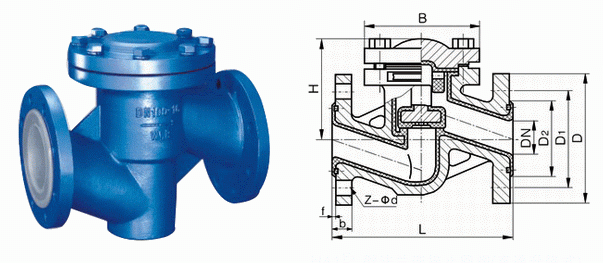升降式襯氟止回閥外形結(jié)構(gòu)圖: