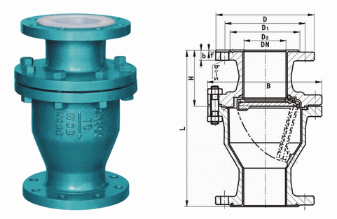 H44F46襯氟止回閥是一種依靠介質(zhì)本身的流動(dòng)而自動(dòng)啟閉閥瓣用來(lái)阻止介質(zhì)逆向流動(dòng)的自動(dòng)防腐閥門(mén),又稱(chēng)逆止閥或單向閥。專(zhuān)用于控制腐蝕性或強(qiáng)腐蝕性介質(zhì),閥體內(nèi)腔表面覆有可供選擇的各種氟塑料,具有強(qiáng)度高、耐腐蝕性能好的特點(diǎn);適用于不同工作溫度和流體管路,防止各類(lèi)管路或設(shè)備上的介質(zhì)逆流的單向啟閉。H44F46襯氟止回閥的閥軸與閥瓣設(shè)計(jì)為一體,全部襯氟塑料的軸,鑲嵌在閥體與閥蓋之間形成的特殊凹槽內(nèi),啟閉靈活,密封可靠。另外,除了閥體、閥瓣外,復(fù)位彈簧也全部包襯了耐腐蝕的氟塑料,設(shè)計(jì)合理的彈簧,使閥瓣在低壓區(qū)內(nèi)也能產(chǎn)生足夠的密封比壓,保證閥門(mén)在低壓力區(qū)密封的可靠性。