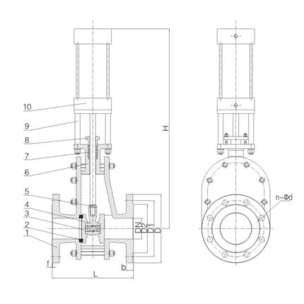 氣動(dòng)陶瓷進(jìn)料閥外形結(jié)構(gòu)圖: