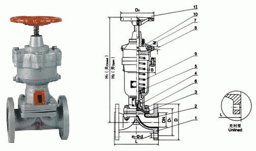 氣動(dòng)隔膜閥閥體采用鑄鐵、鑄鋼或不銹鋼材質(zhì),采用四氟或其他橡膠為膜片,閥體和膜片的緊密配合提供閥體密封和閥座密封,確保了管道內(nèi)部和外部環(huán)境完全隔絕。氣動(dòng)隔膜閥用于控制非腐蝕性或一般腐蝕性以及強(qiáng)腐蝕性介質(zhì),閥體內(nèi)腔表面無襯里或覆有可選擇的各種氟塑料和各種橡膠,適用于各種不同工作溫度和流體管路。是由氣缸和隔膜閥組成,用氣動(dòng)執(zhí)行器來帶動(dòng)隔膜閥的開關(guān),從而達(dá)到管道中的介質(zhì)截?cái)喙δ芎徒油?。閥內(nèi)部襯不同的塑料,可抗不同程度的腐蝕介質(zhì)。