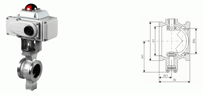 對夾式電動V型球閥外形結(jié)構(gòu)圖: