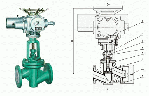 襯氟電動截止閥外形結(jié)構(gòu)圖: