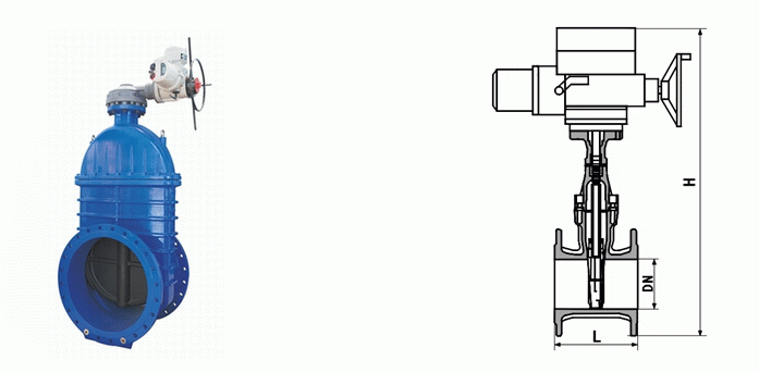 電動彈性座封閘閥外形結(jié)構(gòu)圖: