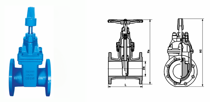 管網(wǎng)彈性座封閘閥外形結(jié)構(gòu)圖: