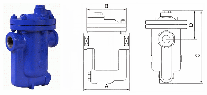 982、882倒吊桶式蒸汽疏水閥外形結(jié)構(gòu)圖: