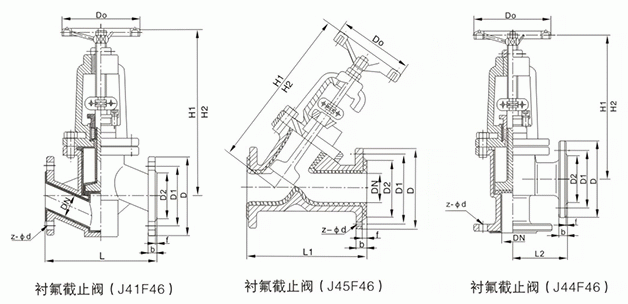J41F46、J44F46、J45F46襯氟截止閥是指關閉件(閥瓣)由閥桿帶動并沿閥座中心軸線做升降運動的閥門,在管路上主要用來接通或截止斷管路中的介質,但不能做節(jié)流用 。襯氟截止閥具有結構緊湊、啟閉靈活、耐腐蝕性能強,被廣泛應用在石油、化工等管路系統(tǒng)中做截斷介質用,但需要強調的是氟塑料襯里的截止閥嚴禁用做流量調節(jié),以免節(jié)流口處產生的高速介質流沖蝕破壞密封面。閥瓣與閥桿設計為一體結構,用以防止由于管路壓力波動造成內件沖出閥體的可能性,結構緊湊,使用安全。