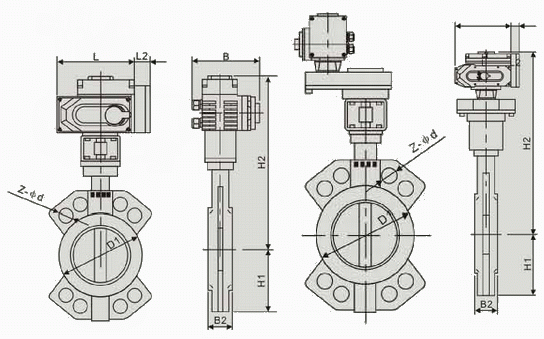 對(duì)夾式電動(dòng)襯氟蝶閥外形結(jié)構(gòu)圖: