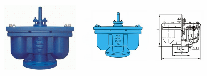 法蘭雙口排氣閥外形結(jié)構(gòu)圖: