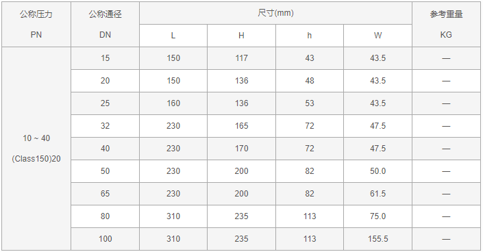 可調(diào)恒溫式疏水閥外形尺寸表: