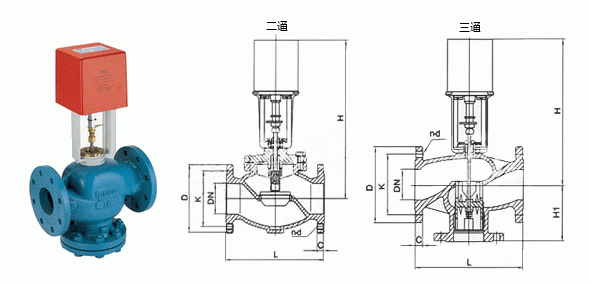 電動(dòng)二通閥外形結(jié)構(gòu)圖: