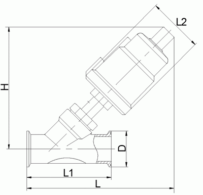全不銹鋼卡箍氣動(dòng)角座閥外形結(jié)構(gòu)圖:
