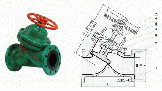直流式法蘭隔膜閥外形結構圖: