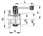 衛(wèi)生級一端法蘭一端螺紋蝶閥結(jié)構(gòu)尺寸: