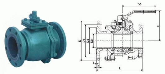 法蘭襯膠球閥外形結(jié)構(gòu)圖:
